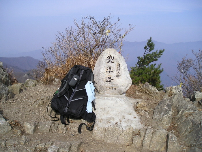 - 머리 양쪽에 뿔이 달린 멀리서도 구분되는 독특한 모양의 도솔봉 정상(1314M)에 선다.