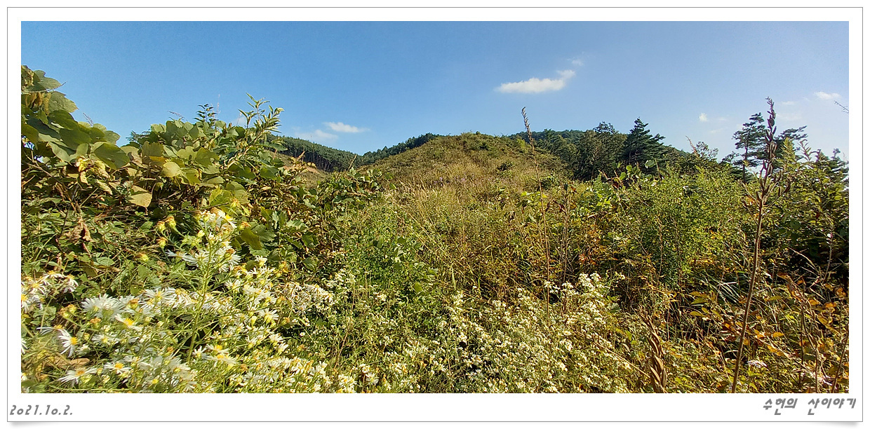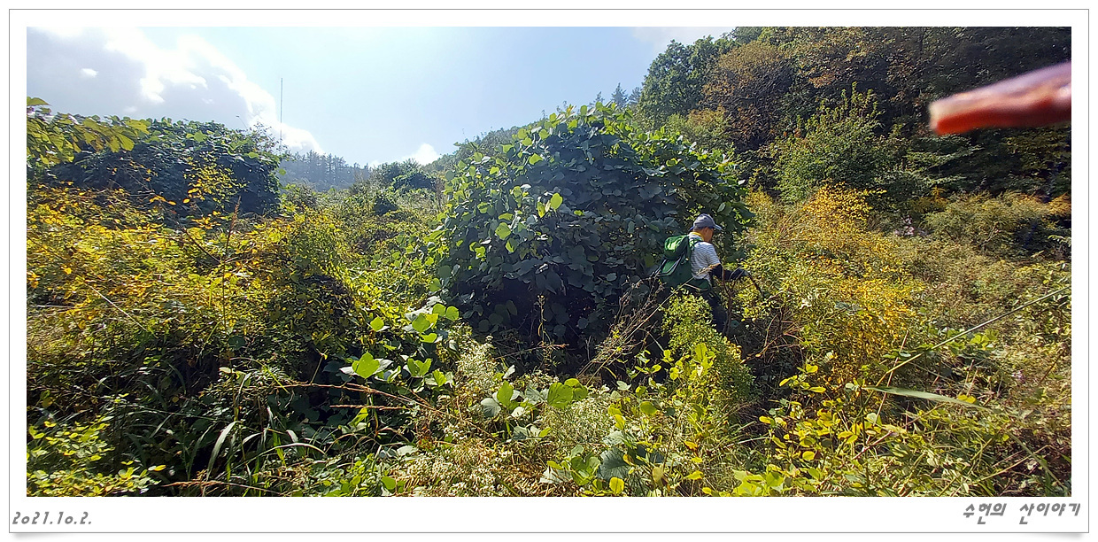 접산으로 향하는 들머리부터 빽빽한 잡풀밀림에