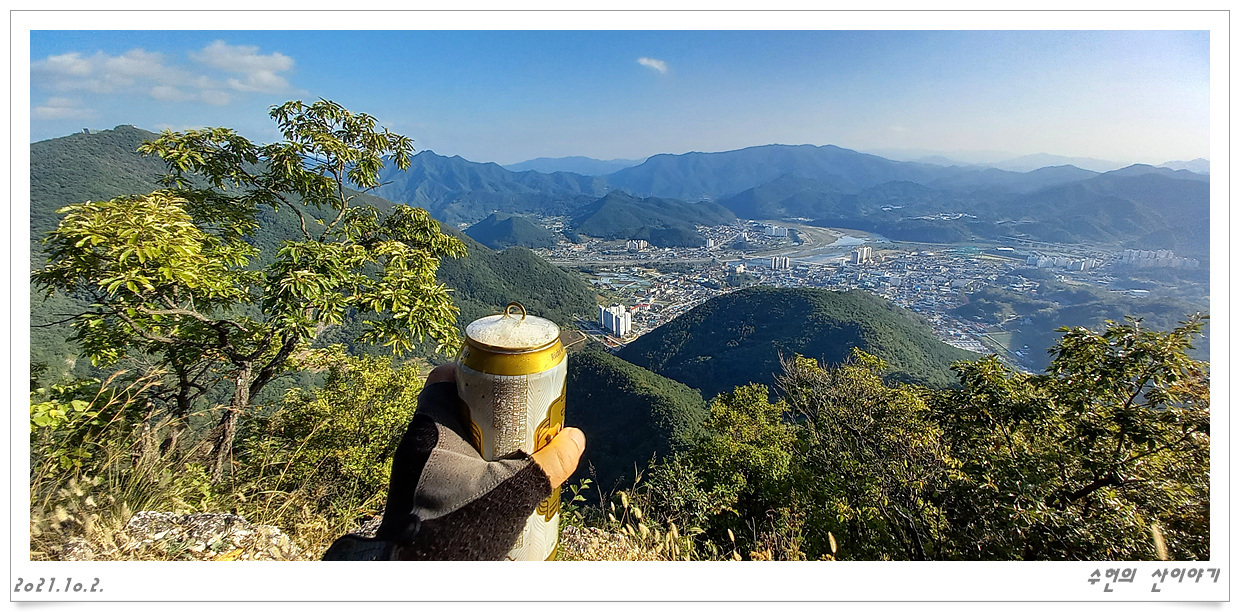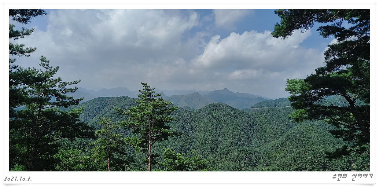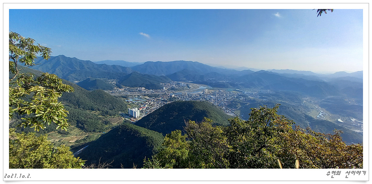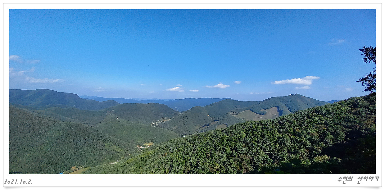 봉래산 뒤로 고고산 완택산의 석항지맥 산줄기