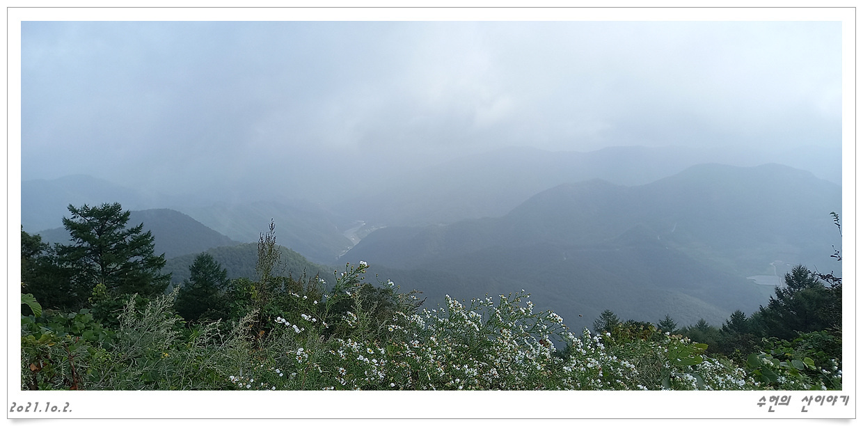 지맥 마루금...좌측물은 조양강이고 우측물은 평창강이다