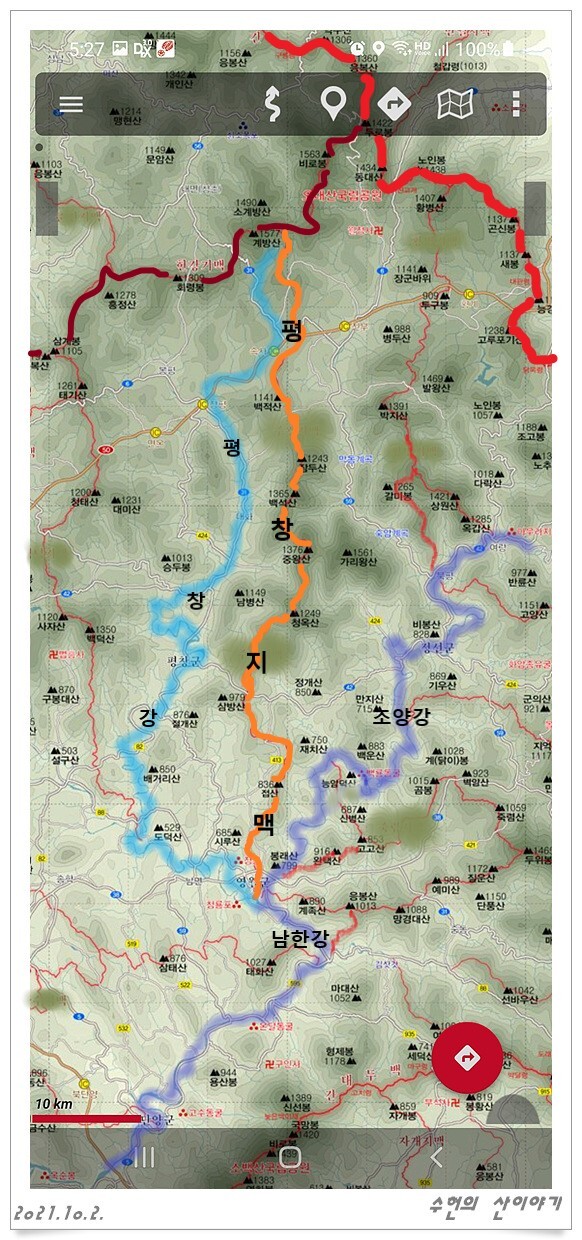 * 산행기에 언급되는 지맥명은 수계중심의 "대한산경표"를 따름