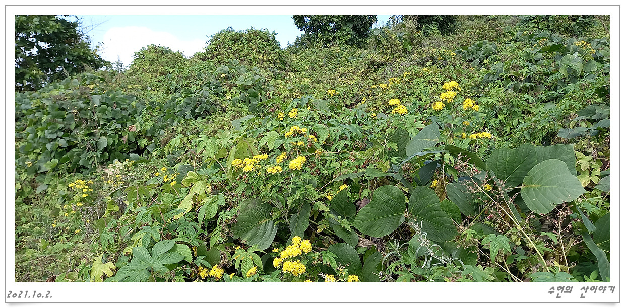 묶은 벌목지는 잡풀 밀림으로 변했고